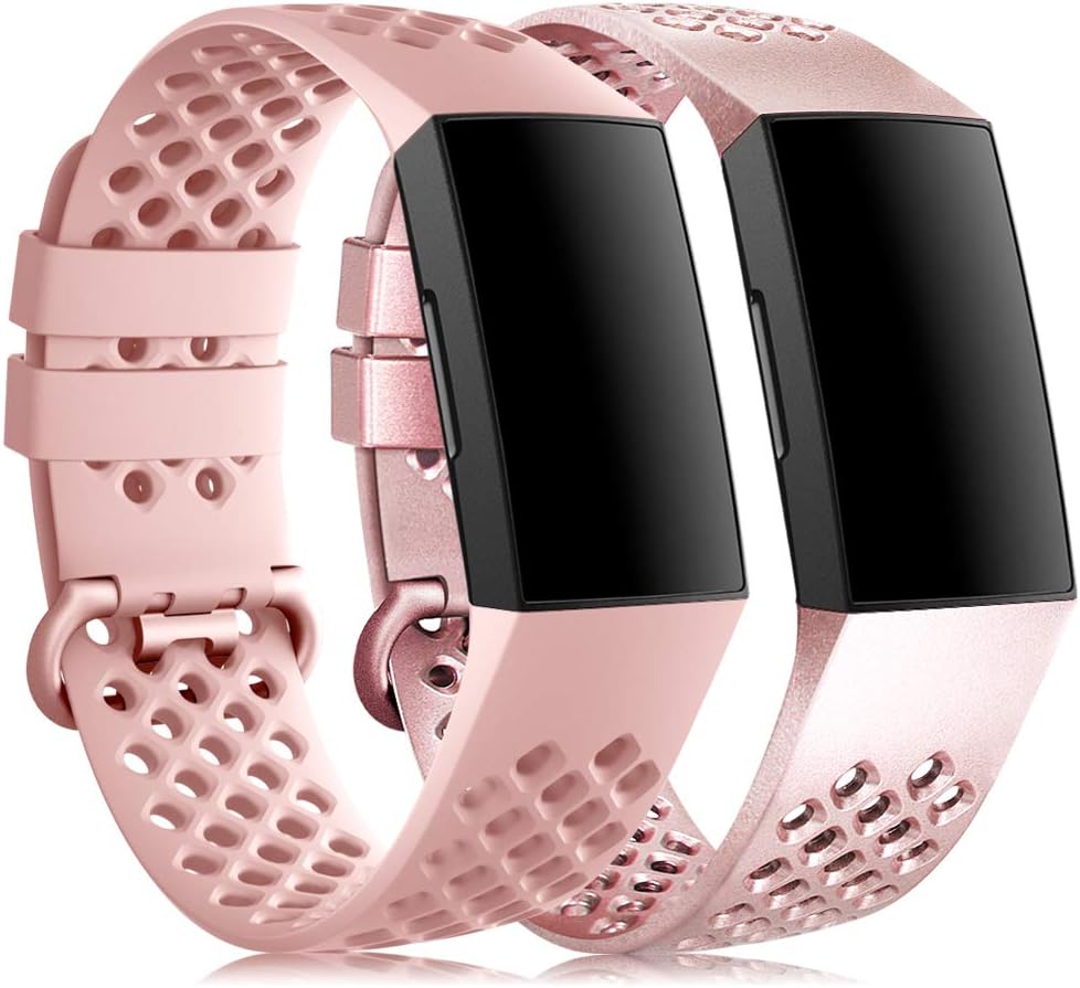 Rioroo Bracelet Compatible With Fitbit Charge 4 Charge 3 Bracelet Rose Gold Pink Women Men Silicone Sport Holes Replacement Strap Accessory Band L Amazon De Electronics Photo